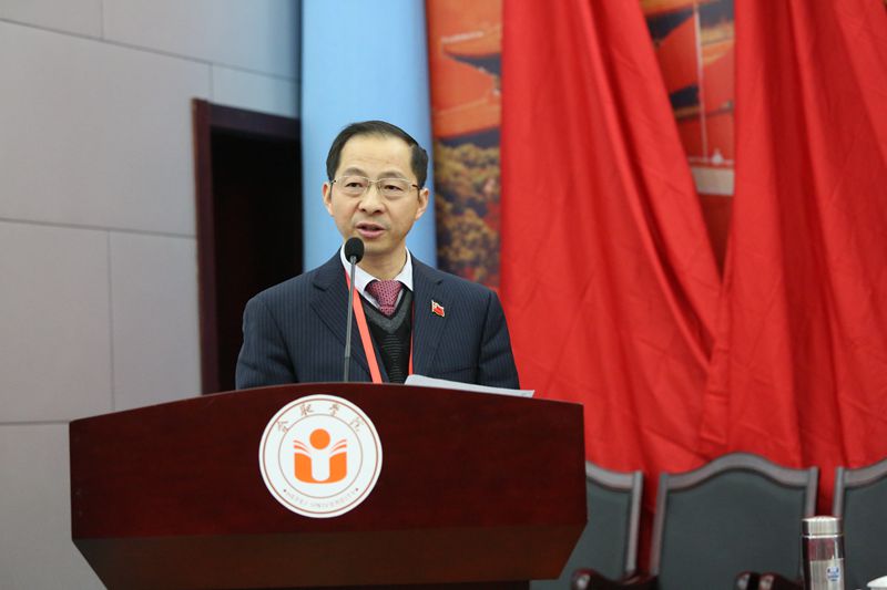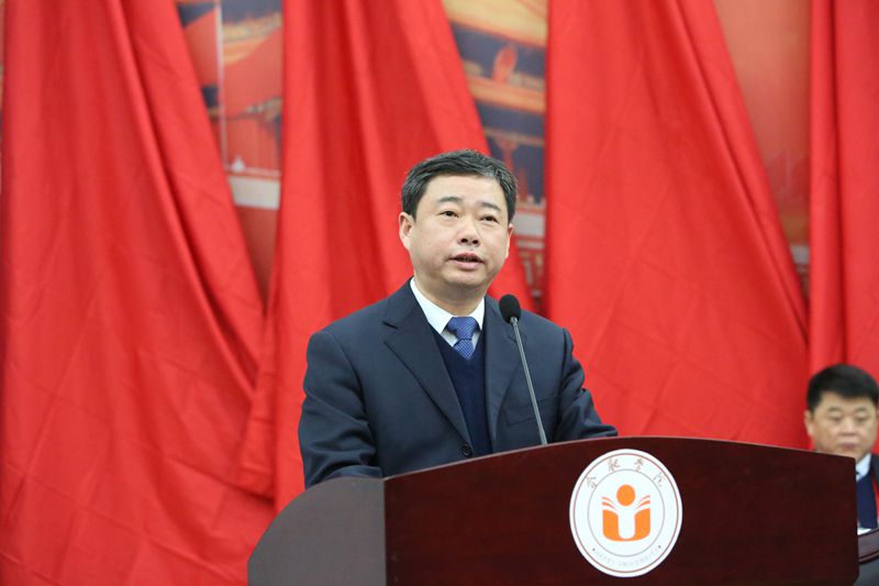 合肥学院工会主席崔国庆代表校群团组织致辞,省政协委员、民革合肥市委副主委、艺术设计系主任谢海涛代表民主党派和无党派知识分子联谊会致辞。