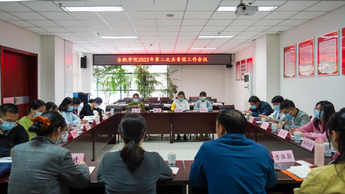 4月20日,合肥学院2022年度第二次共青团工作会议在行政楼一楼会议室召开,会议主题为“严抓基层团组织规范化建设”,校院两级共青团干部参会,会议由校团委书记王玉主持。