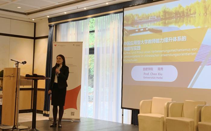 Als Direktor der International Exchange Branch der angewandten Universitäten der China Education Association for International Exchange des Bildungsministeriums, teilt die Universität Hefei aktiv Ressourcen der Bildungskooperation in Europa und leitet andere chinesische angewandte Universitäten bei der akademischen Forschung und der internationalen Zusammenarbeit an, um die akademische Forschung und den Austausch von international angewandter Hochschulbildung zu fördern, das gegenseitige Lernen und die Entwicklung von angewandten Hochschulen in China und Europa voranzutreiben, den Aufbau der neuen angewandten Hochschulen in China umfassend zu beschleunigen. Vom 20. bis 29. Oktober veranstaltete die Universität Hefei nach dem Plan des Bildungsministeriums und der China Education Association for International Exchange gemeinsam mit den einschlägigen Hochschulen und Hochschulallianzen in Deutschland, der Schweiz und Italien Das zwölfte Deutsch-Chinesische Symposium zur angewandten Hochschulbildung“ Das vierte Schweizerisch-Chinesische Symposium zur angewandten Hochschulbildung“ und „Das Italienisch--Chinesische Symposium zur angewandten Hochschulbildung“ drei internationale akademische Symposien durch. Die stellvertretende Generalsekretärin der China Education Association for International Exchange Frau Dr. Zhou Yan als Delegationsleiterin, Vorsitzender des Application-oriented Universities Committee of China Education Association for International Exchange (CEAIE-AUC) und Professor an der Universität Hefei Prof. Dr. Cai Jingmin als akademischer Leiter der Delegation, und 38 Vertreter aus 21 chinesischen Institutionen bildeten die chinesische akademische Delegation für Angewandte Hochschulbildung.
