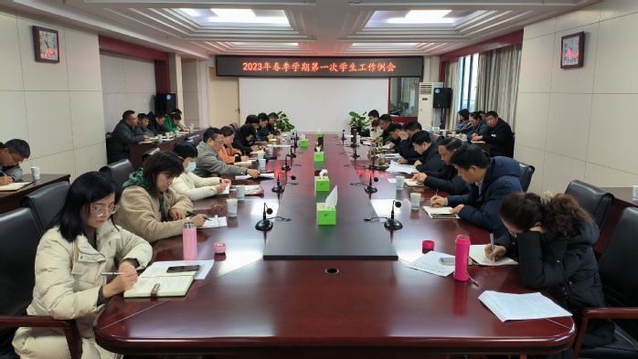 会议传达了上级教育主管部门有关开学工作要求,详细解读了开展春季学期系列教育引导活动工作方案,要求切实组织好学生返校及后续管理服务工作,抓好入校前、入校后两周、入校后一段时间三个关键时期的重点工作,组织上好“开学第一课”和开学第一次主题班会,以加强学风建设为发力点,开展形势丰富的学生实践、校园文化、师生互动、心理疏导、就业指导等活动,走近学生,下沉一线,共同做好新学期开学阶段的思想政治教育和安全稳定工作。