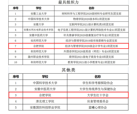 近日,在共青团安徽省委员会、安徽省学生联合会主办的2022年安徽省高校联通杯“活力团支部”“活力社团”风采展示活动中,我校经济与管理学院2020级会计学专业1班团支部荣获“活力团支部”称号,大学生红十字会荣获“活力社团”称号。