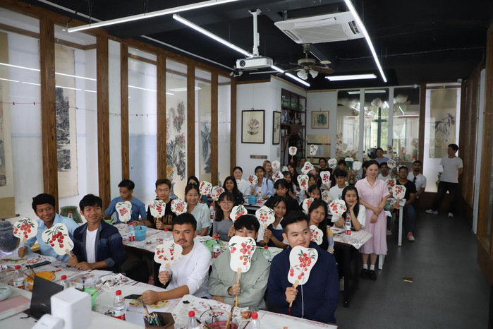 在安徽省博物馆,国际学生了解了安徽历史人文的发展历程,近距离欣赏了传统的徽派建筑和中国古代工艺珍品。在溢清书画院,国际学生对中国的书法艺术有了全面而直观的认识及感受,国际学生与国画老师面对面学习传统小写意——《荔枝图》,尝试绘制团扇,感受中国传统艺术的魅力。