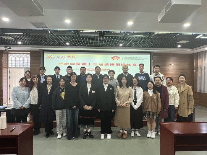 11月24日下午,合肥学院第十三届德语朗诵比赛在学校一期六栋报告厅举行。外国语学院党委书记吴孔宝、院长叶旭萍、安徽中德教育合作基金会秘书长何世昆、德语系主任张炜等参加。本次比赛由安徽中德教育合作基金会赞助,12名来自德语系、物流班、大陆班和信息与计算机科学班的学生同台竞技。外国语学院朱越、李菲菲、赵赫男、刘倩男四位老师担任评委。