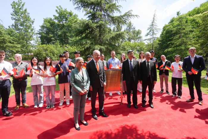 Vor zehn Jahren besuchte Stefan Weil unsere Uni und pflanzte mit den Leitern des Auswärtigen Amtes der Provinz Anhui, dem Bildungsministerium der Provinz, der Stadtregierung von Hefei sowie den Lehrern und Studenten der Uni eine Zeder, die die deutsch-chinesische Freundschaft symbolisiert. Heute hat dieser „Deutsch-Chinesische Freundschaftsbaum“ tiefe Wurzeln, hoch und schön, voller Vitalität. Er ist ein Zeugnis der Freundschaft zwischen China und Deutschland und erinnert uns an die Entwicklung der Internationalisierung der Universität.